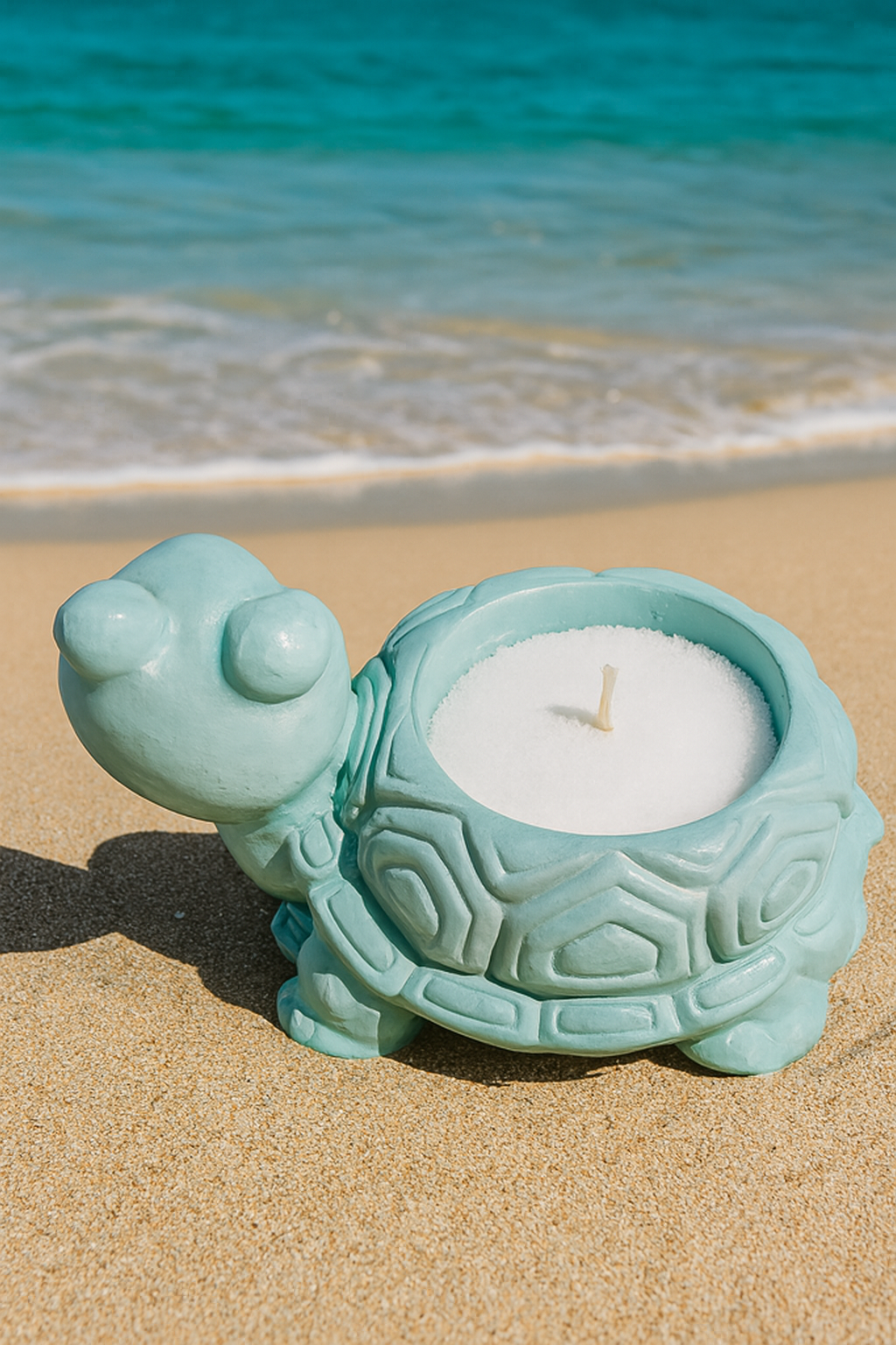 Gips schildpad voor kaarskorrels, theelichtje of kan ook een kunstplantje ingezet worden. Gebruik geen echte bloemen of plantjes aangezien gips niet tegen water kan, hierbij zou het beeldje gaan barsten.